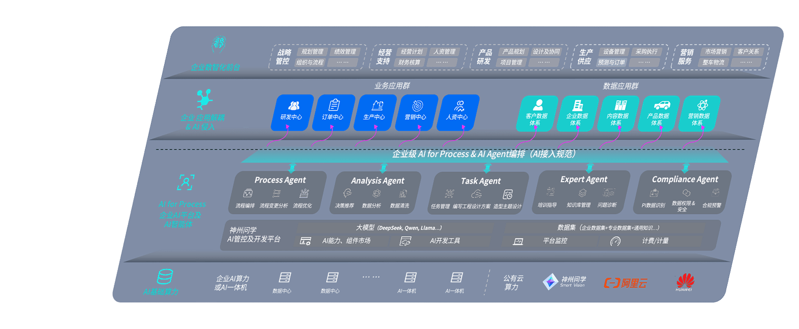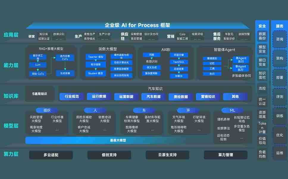 端到端的一站式AI工作空间深度融合了从企业战略规划到日常经营的全流程业务板块,,定向解决车企内部领域多、、、、部门多、、、、链条长、、、、场景碎片化等难题,,,支持车企快速构建以AI为核心的生产力写作体系,,实现任务执行与AI能力的无缝集成与交互